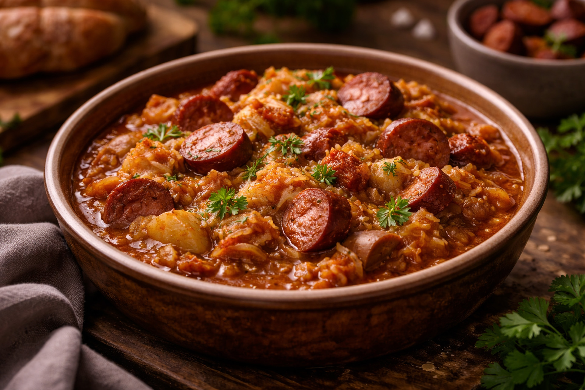 Slow-cooked hunter’s stew with cabbage, kielbasa, and pork.
